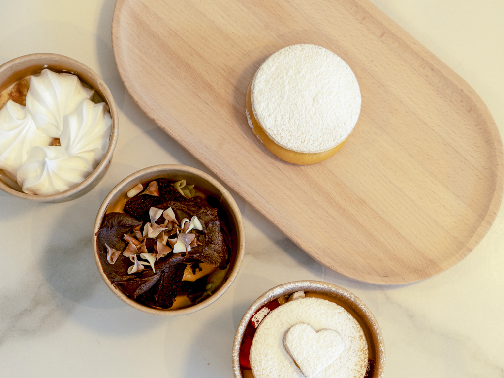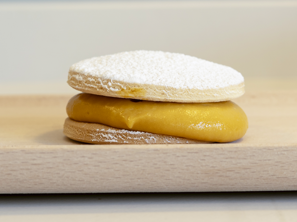 El primer postre que hice y con el que empezó todo fueron los besos de moza. Es un postre súper típico de Perú que tiene una galletita en la parte de abajo, merengue y una capa de chocolate. Es buenísimo, pero muy industrial, y yo lo transformé en un formato diferente y artesanal con distintos sabores. Fue todo un éxito. Este postre solo lo hago en invierno, pero está fijo en la carta sí o sí.