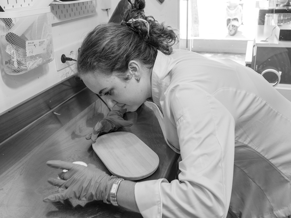 Mi formación académica no tuvo nada que ver con la pastelería, ya que soy diseñadora de modas y tengo un máster en diseño textil. Siento que el diseño ha influido mucho en la decoración del local, en la parte textil y también en el packaging. Aunque contraté a alguien que lo diseñara, tiene toda mi esencia como diseñadora.