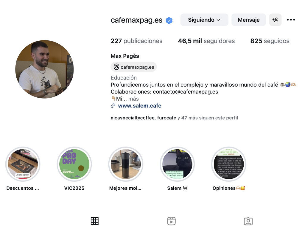 Su audiencia —que supera los 85 000 seguidores en redes sociales— no solo sigue sus contenidos por entretenimiento, sino también para aprender a preparar un mejor café en casa. A partir de esa comunidad, Max decidió dar el salto y crear Salem Café, una marca de café de especialidad tostado y distribuido con criterio propio.